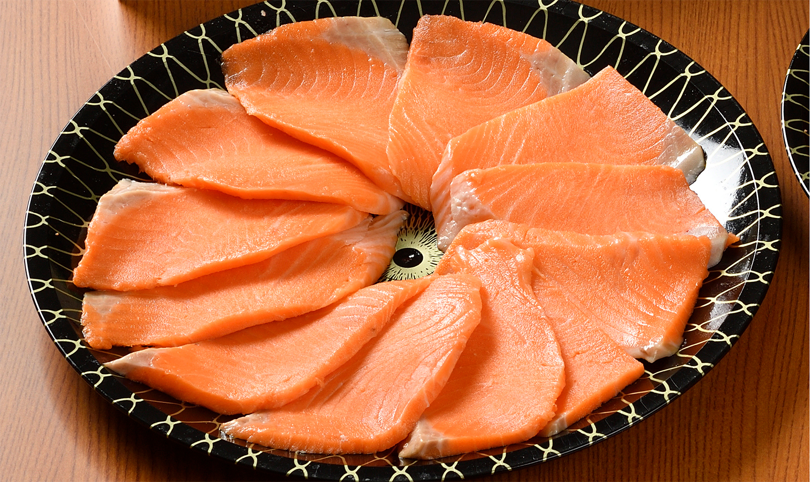 キングサーモンの生産量は世界第3位、厳格な生産管理でカナダ・オーガニック認証を取得したキングサーモンは、天然に劣らない肉質である。