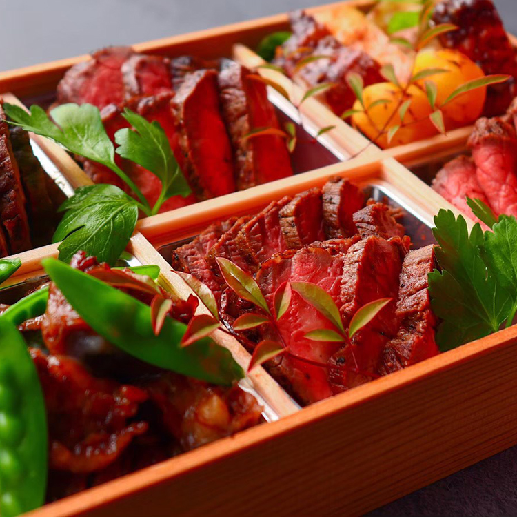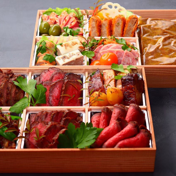 『肉山』でお馴染みの赤牛のローストや、和牛のローストなど、これでもかと肉を楽しめる豪華肉おせちとなっています。色々な種類のお肉が食べ比べできるのも楽しみ。二の重には、『肉山』で人気のパテやカレーなども付きます。